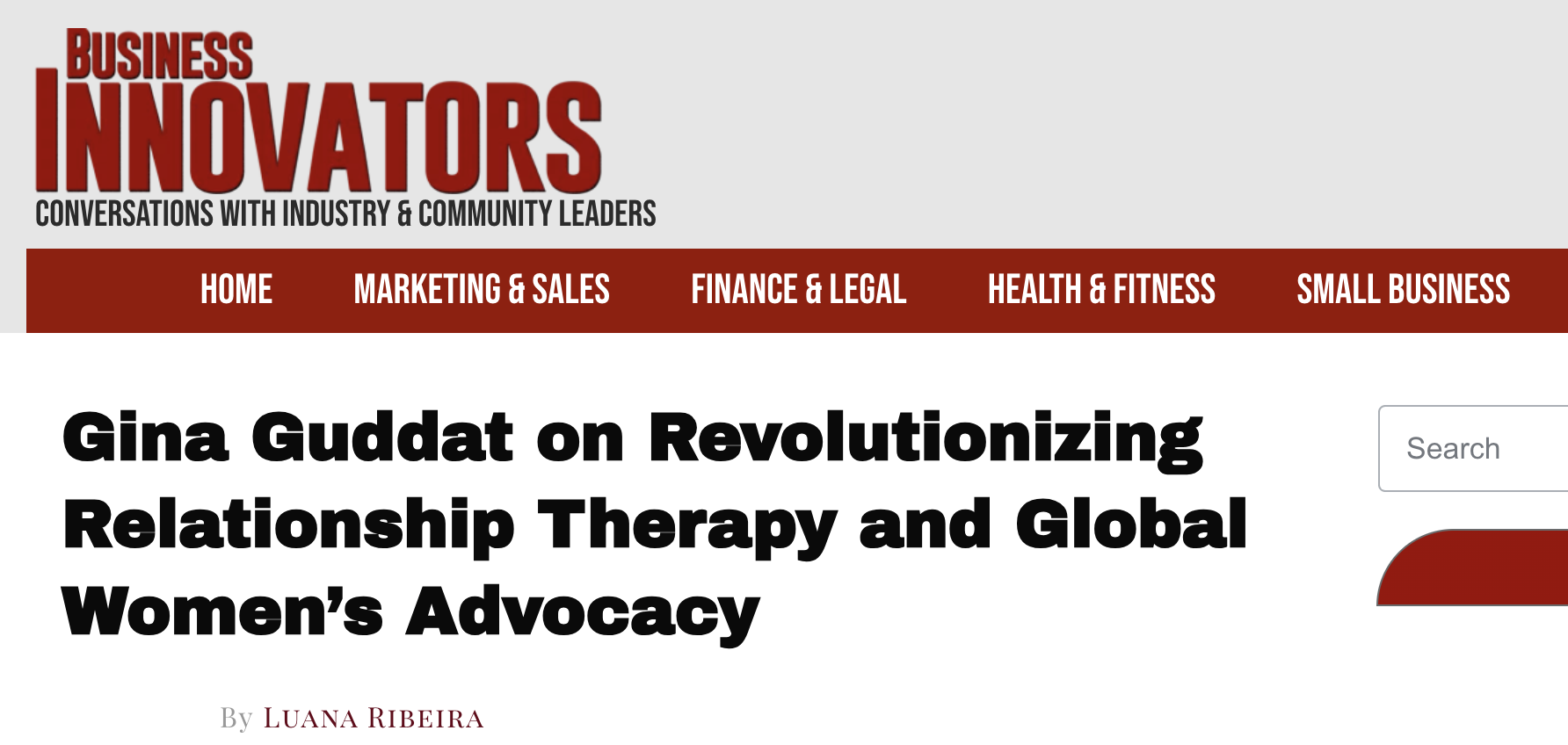 Business Innovators Magazine recently spotlighted Gina Guddat for her impactful work in relationship therapy and global women’s advocacy, recognizing her as a leading voice in modern couples counseling.